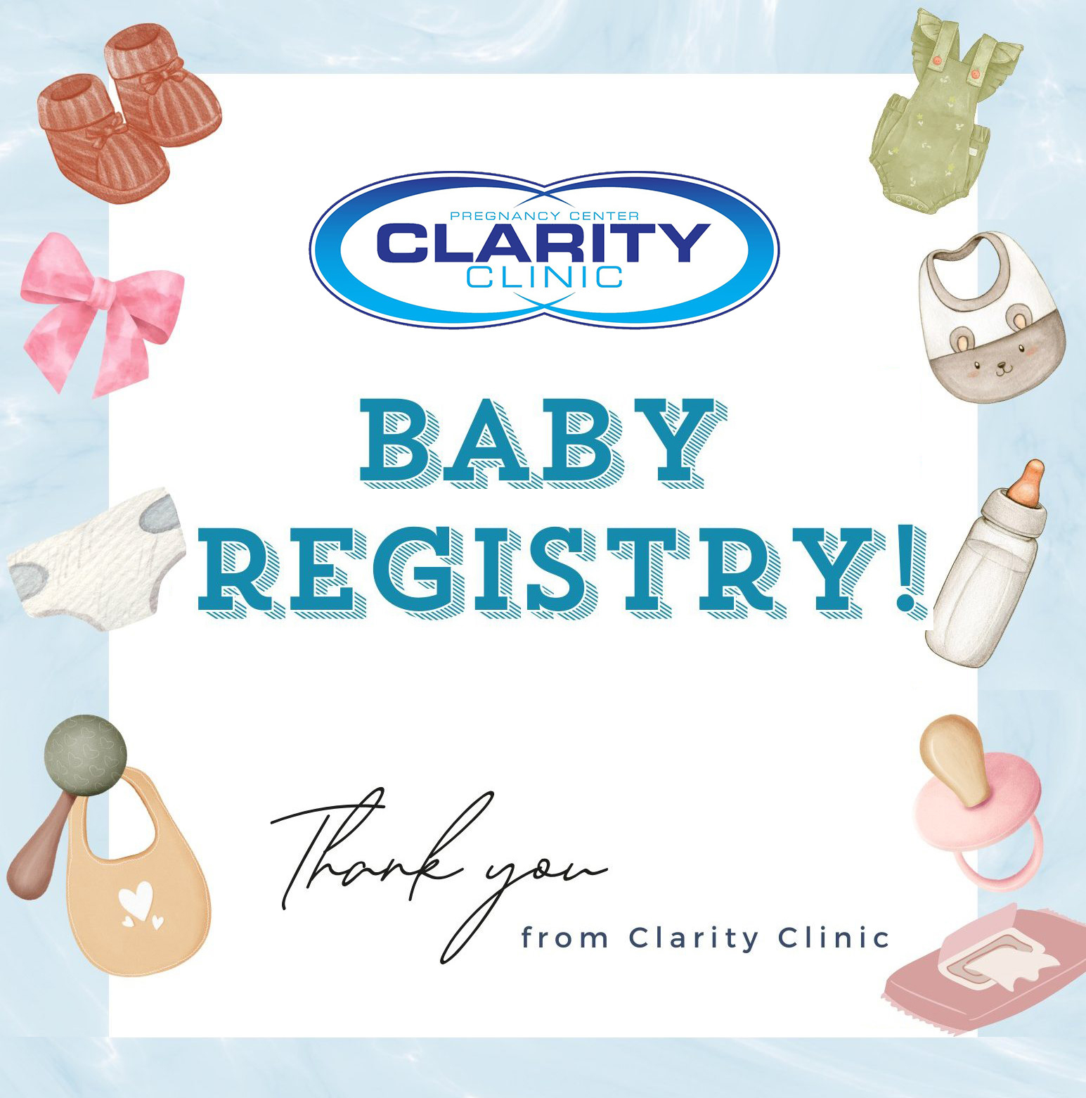 Thank you for visiting Clarity Clinic's Baby Shower Registry. Items will go in our Giving Tree Boutique for our clients to purchase with the points they have earned through our Earn While You Learn program.
